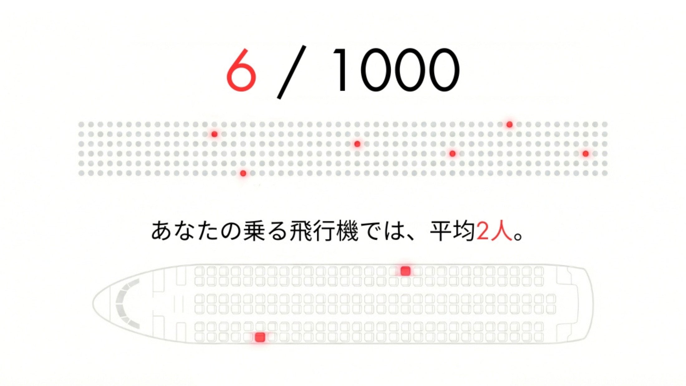 ※出典:SITA Baggage IT Insights 2024。世界平均の手荷物誤取り扱い率(紛失・遅延・破損を含む)に基づく。約6個には、完全な紛失だけでなく、「遅延(ディレイ)」や「破損」も含まれます。